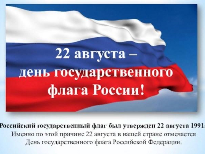 22 августа в России отмечается День Государственного флага Российской Федерации. Флаг, как символ государственности, неразрывно связан с историей страны. Он вызывает гордость и чувство защищённости, трепет в душе каждого россиянина. В наши дни ни один государственный праздник не обходится без этого символа: им украшают жилые дома и госучреждения, флаг торжественно проносят на демонстрациях и разворачивают на митингах.