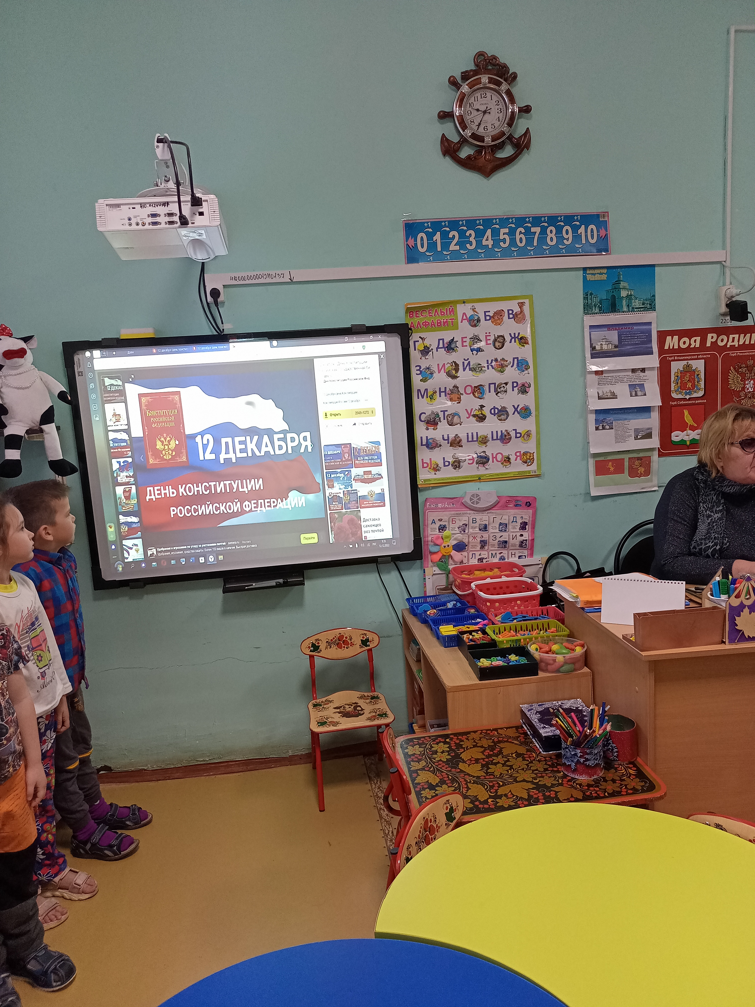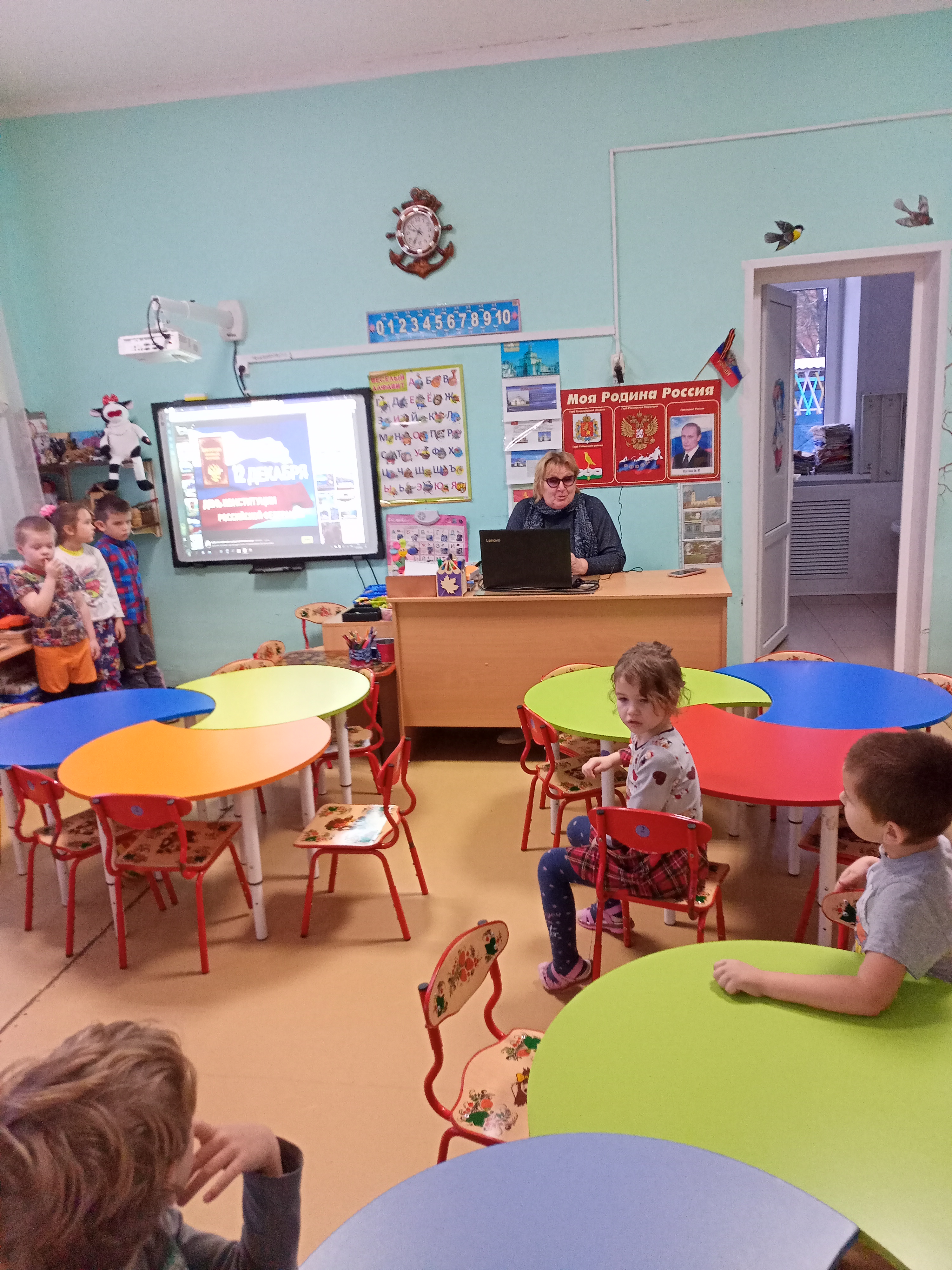 В рамках празднования Дня Конституции РФ педагоги ДОУ в игровой форме рассказали детям об основном законе России, государственных символах, побеседовали на темы с просмотром презентаций: «Конституция и мы», «Флаг России», «Каждый ребенок имеет право», «Я – гражданин России»; прослушали гимн России, собирали пазлы.