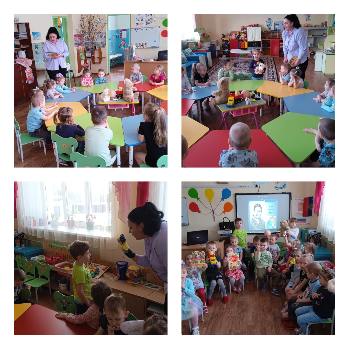 В день рождения известной поэтессы в группе «Солнышко» была организована встреча с сельским библиотекарем. Она принесла детям книги А.Л.Барто, рассказала о её жизни и творчестве, познакомила с книгами. Дети поиграли в настольный театр, инсценируя стихи А.Л.Барто.Некоторые дети рассказали стихи поэтессы наизусть.