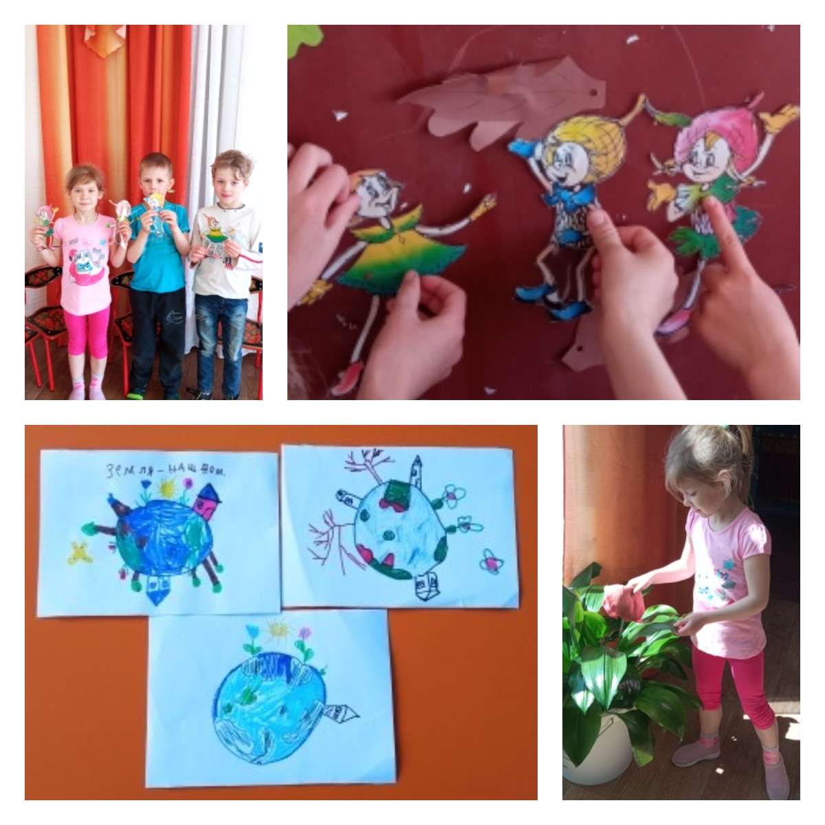 Ребята показали сказочным героям, как они берегут природу и заботятся о ней: убирали мусор, ухаживали за комнатными растениями, рисовали рисунки на тему «Земля наш общий дом».
