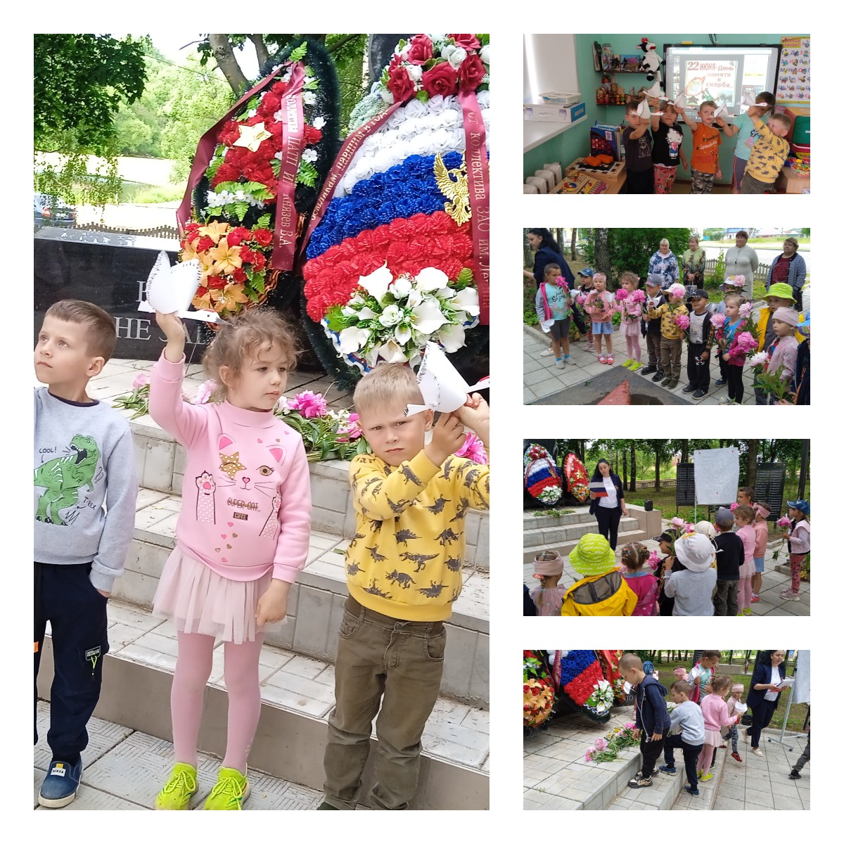 В этот день в детском саду прошли мероприятия, посвященные этому дню. Дошколятам была показана презентация «Великая Отечественная война», воспитатели рассказали детям о вероломном нападении фашистских войск, о долгих и тяжелых годах войны, о героических поступках людей, о детях – героях войны. Посетили памятник героям Великой Отечественной войны, возложили цветы, рассказали стихи. В завершении мероприятий наши воспитанники вместе с педагогами почтили память погибших минутой молчания.