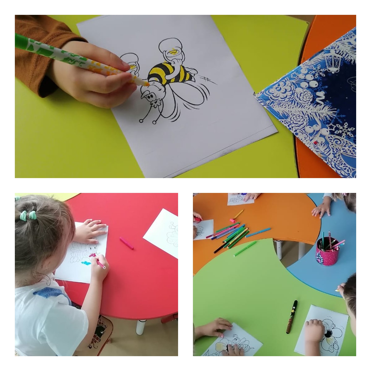 Так, в этот день дошкольники МБДОУ № 15 познакомились с историей появления необычного праздника, с традициями празднования медового спаса. Воспитатель группы рассказала детям о том, что мёд – это не просто сладость, а очень питательный и полезный для здоровья продукт. Его употребляют в пищу просто так, с хлебом и чаем, а также готовят из него праздничные блюда: пекли пряники, пышки, пироги. Считается, что первая ложка меда обладает магической силой: нужно загадать заветное желание, которое обязательно сбудется. Продуктом познавательного часа стали творческие работы детей - раскраски "Пчелки".
