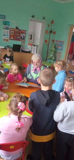 В октябре в нашей стране отмечается праздник пожилого человека. В нашем детском саду тоже прошли мероприятия, посвящённые этому празднику: была организована фотовыставка «Мои любимые дедушка и бабушка», беседы на тему «Старость надо уважать», ребята с интересом рассказывали о своих родственниках и разыгрывали сценку «Бабушки и дедушки». В старшей группе был организован литературный час «Бабушкина сказка», где бабушка Надежда Ивановна прочитала детям сказку «Волшебная дудочка».