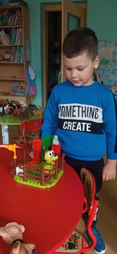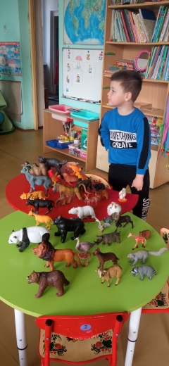 В старшей группе была организована выставка фигурок животных одного из воспитанников, дети полистали энциклопедии, рассказали о своих домашних питомцах, а потом из конструкторов построили макеты домиков для бездомных животных.