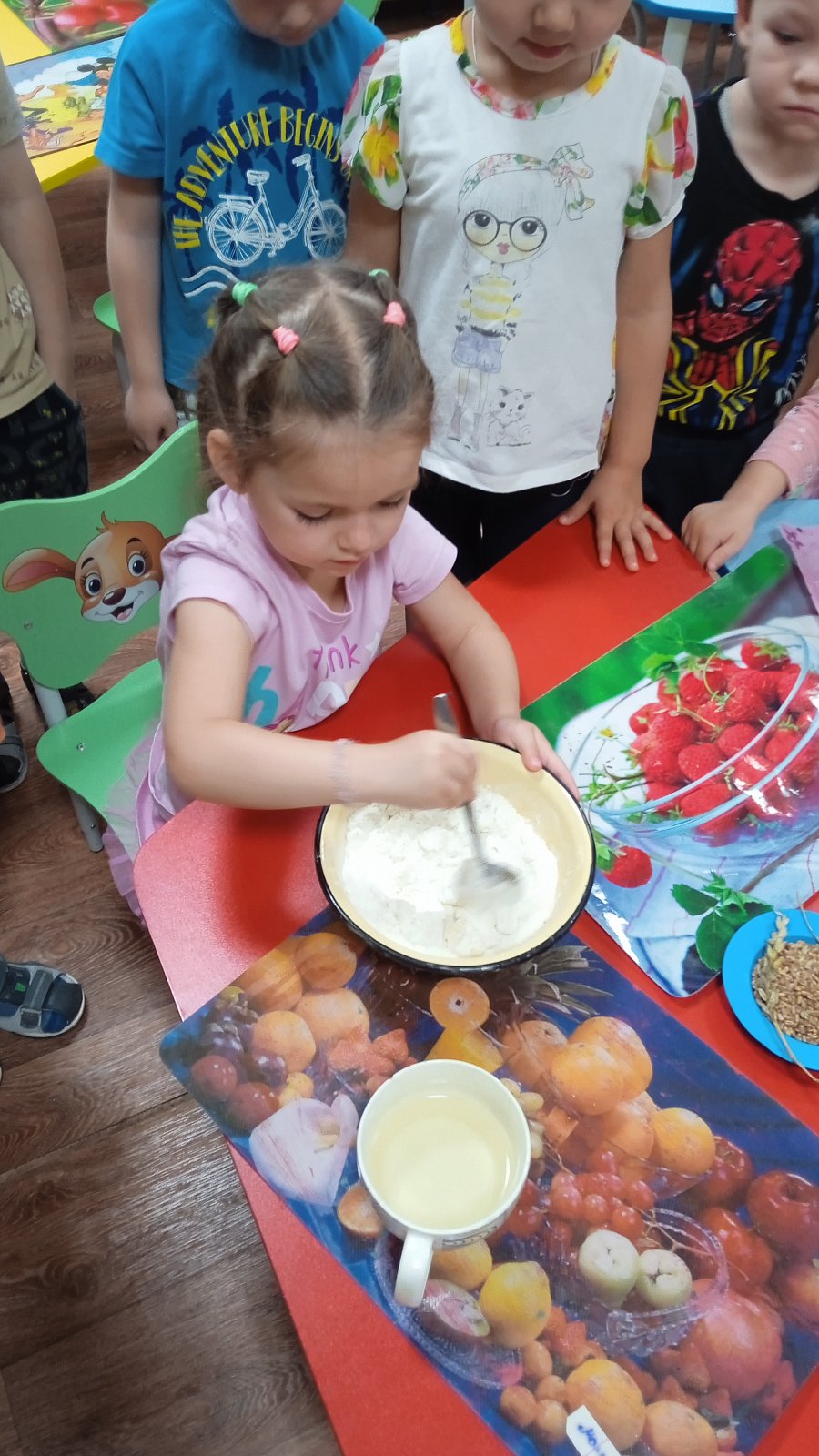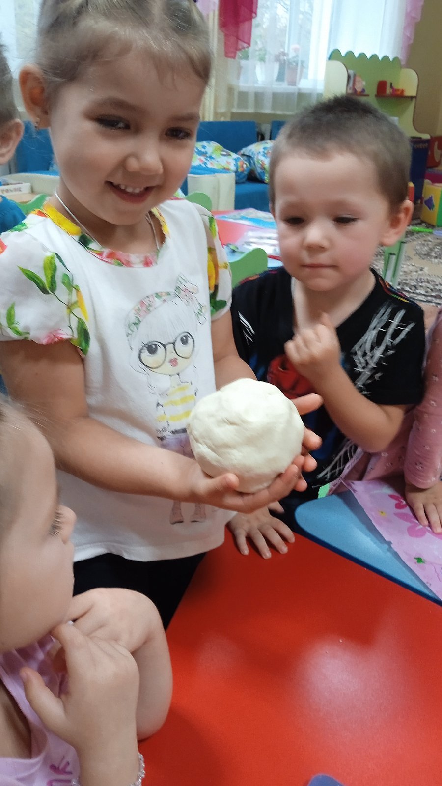 В этот день ребята младшей группы узнали много нового и интересного о хлебе. Вместе с воспитателем Яшиной Мариной Анатольевной рассмотрели красочные картинки с изображением хлебобулочных изделий, узнали из чего пекут хлеб, как собирают колоски, отвечали и задавали вопросы. Вспомнили сказку «Колобок», которого испекла бабка из муки. Вот и ребята с большим удовольствием лепили колобки , бублики и баранки из соленого теста, которое сделали сами.