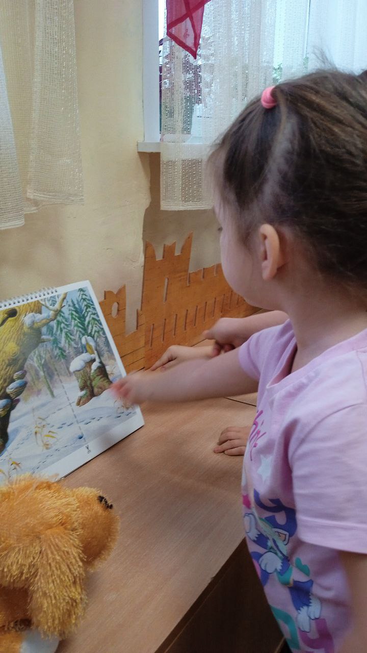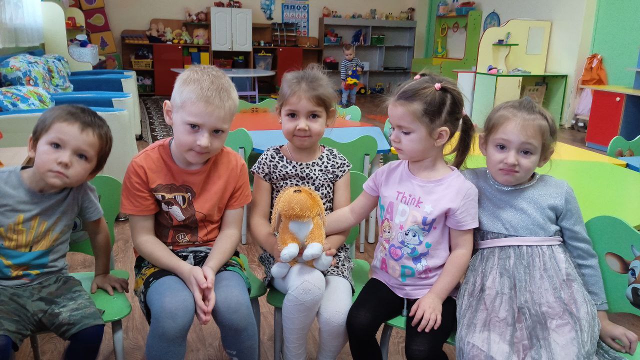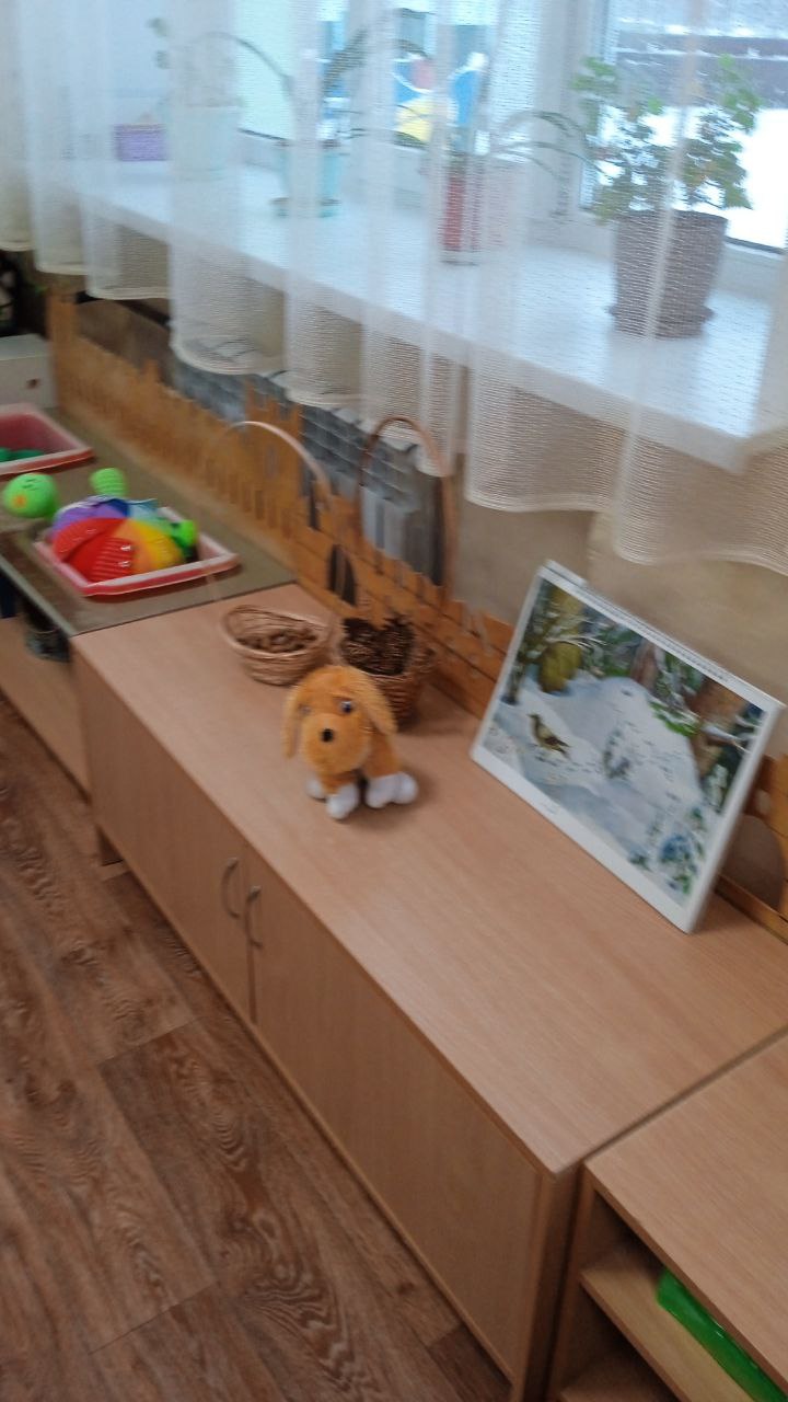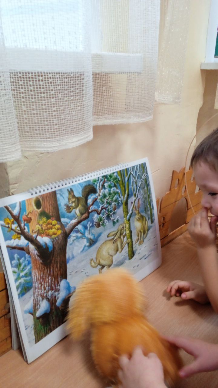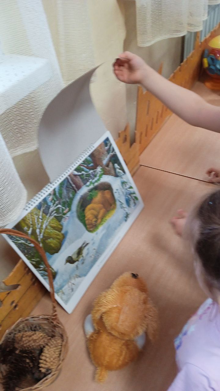 В средней группе прошло тематическое занятие, к детям приходил щенок Бобик и попросил детей рассказать о том, как в лесу зимуют животные.