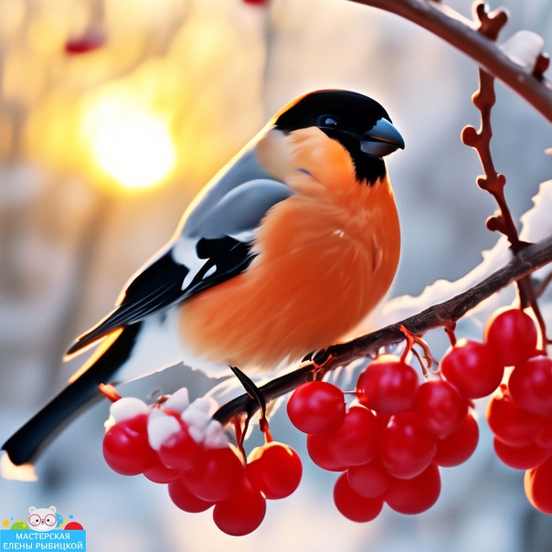 Красит грудку снегиря,