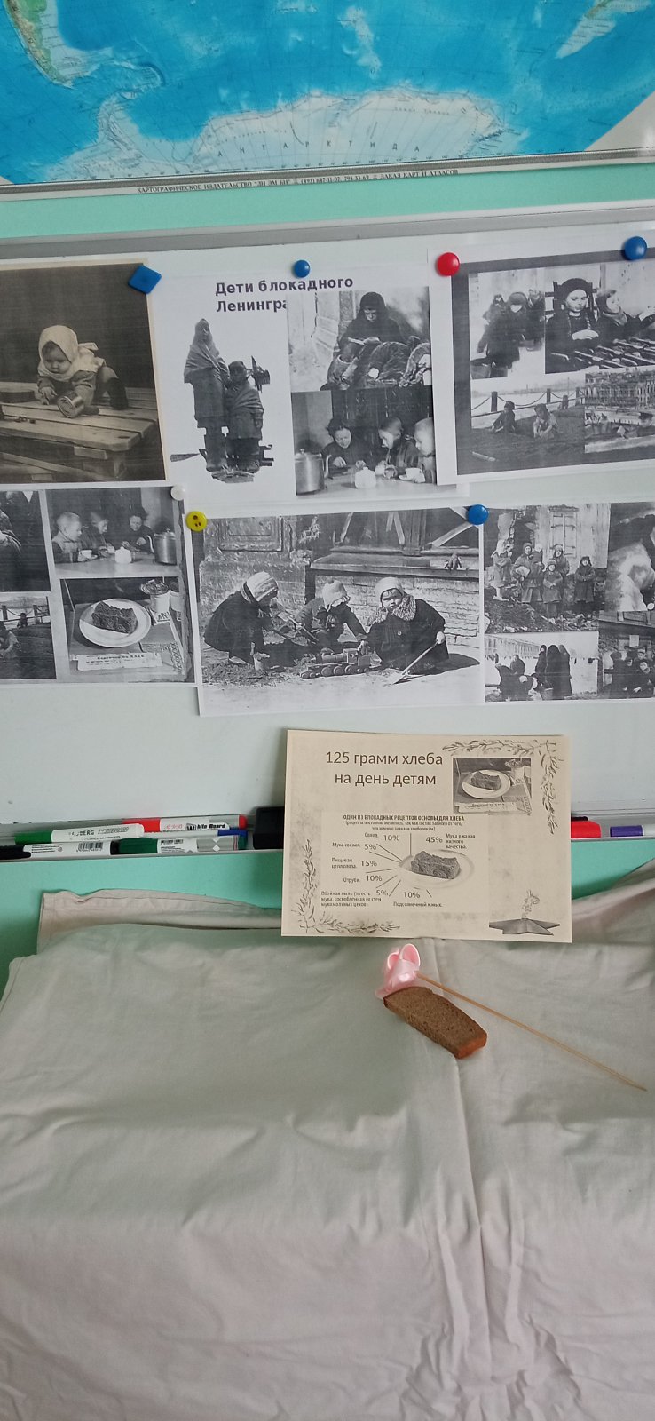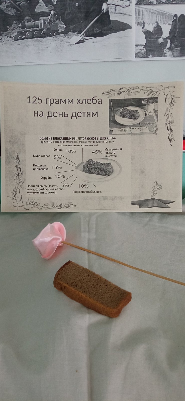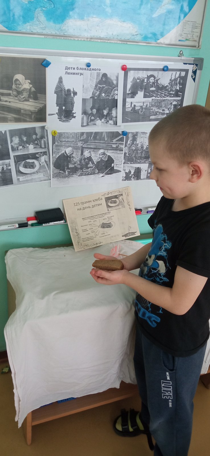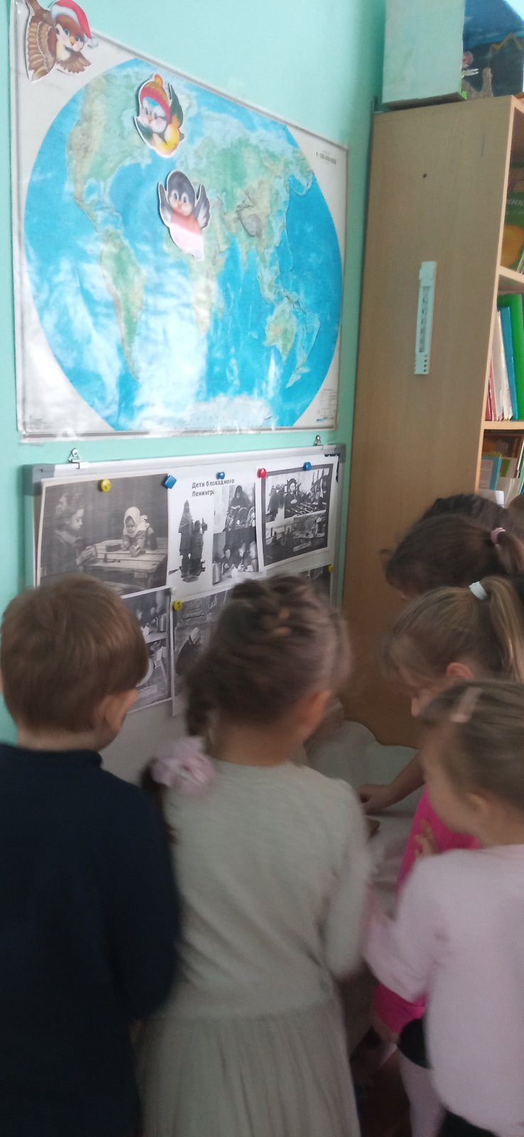 Педагог рассказала о детях блокадного города, Тане Савичевой, «Дороге жизни» и кусочке ленинградского хлеба. Дети организовали в группе выставку фотографий детей блокадного Ленинграда.
