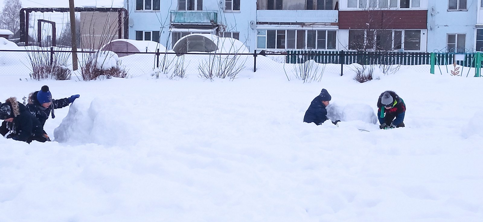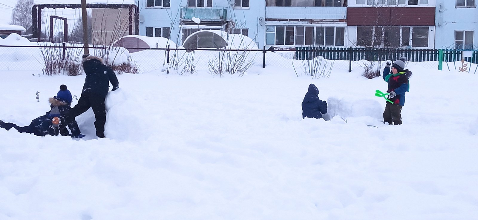 - кто-то на прогулке построил снежную крепость и брал её штурмом.