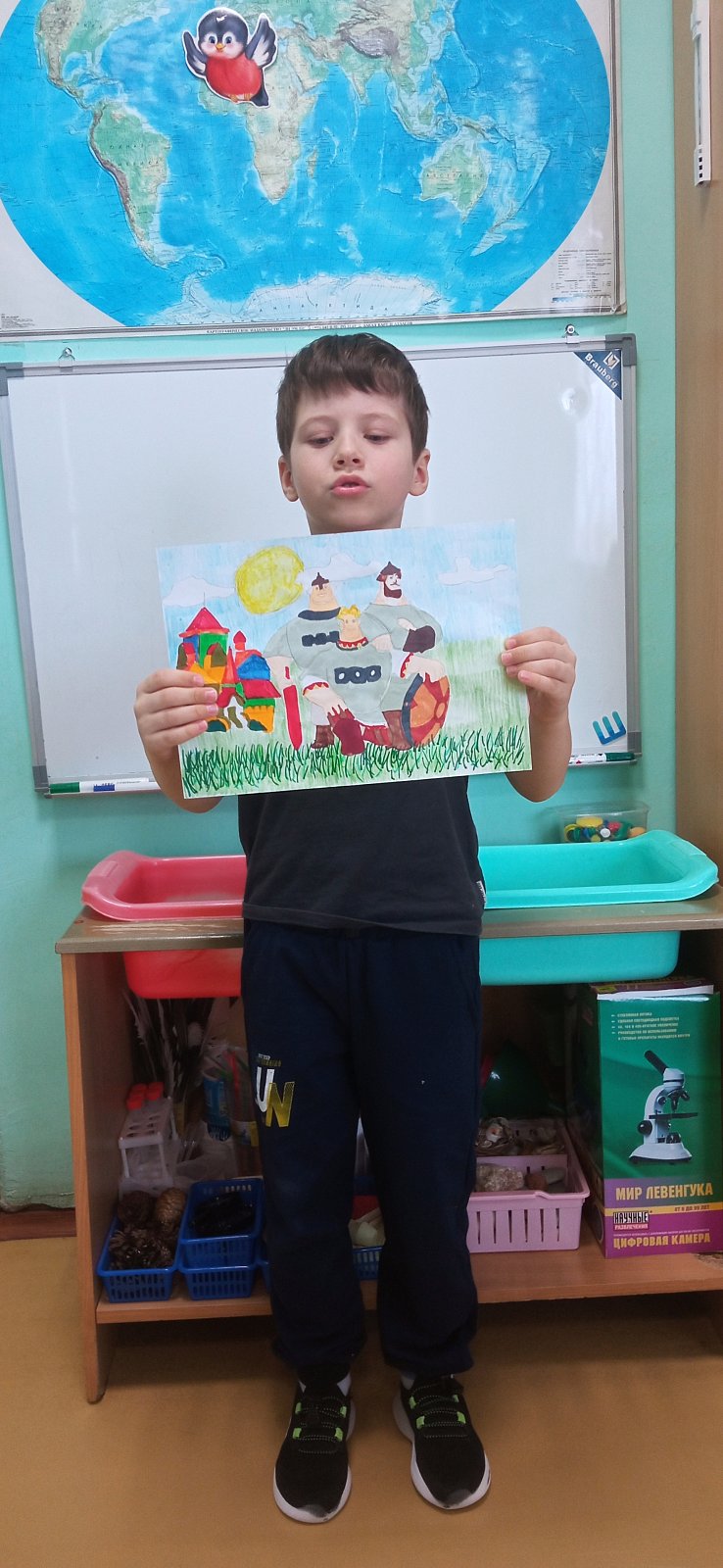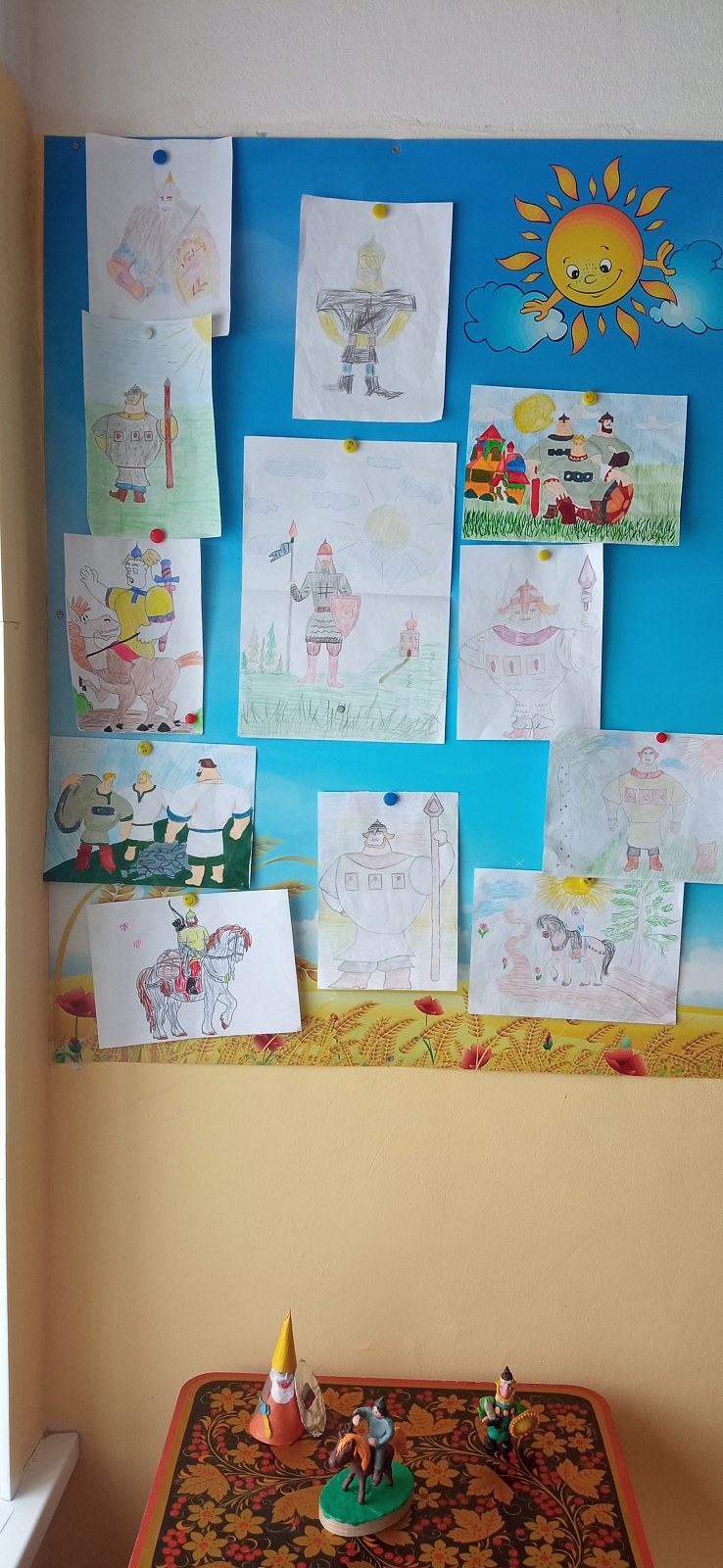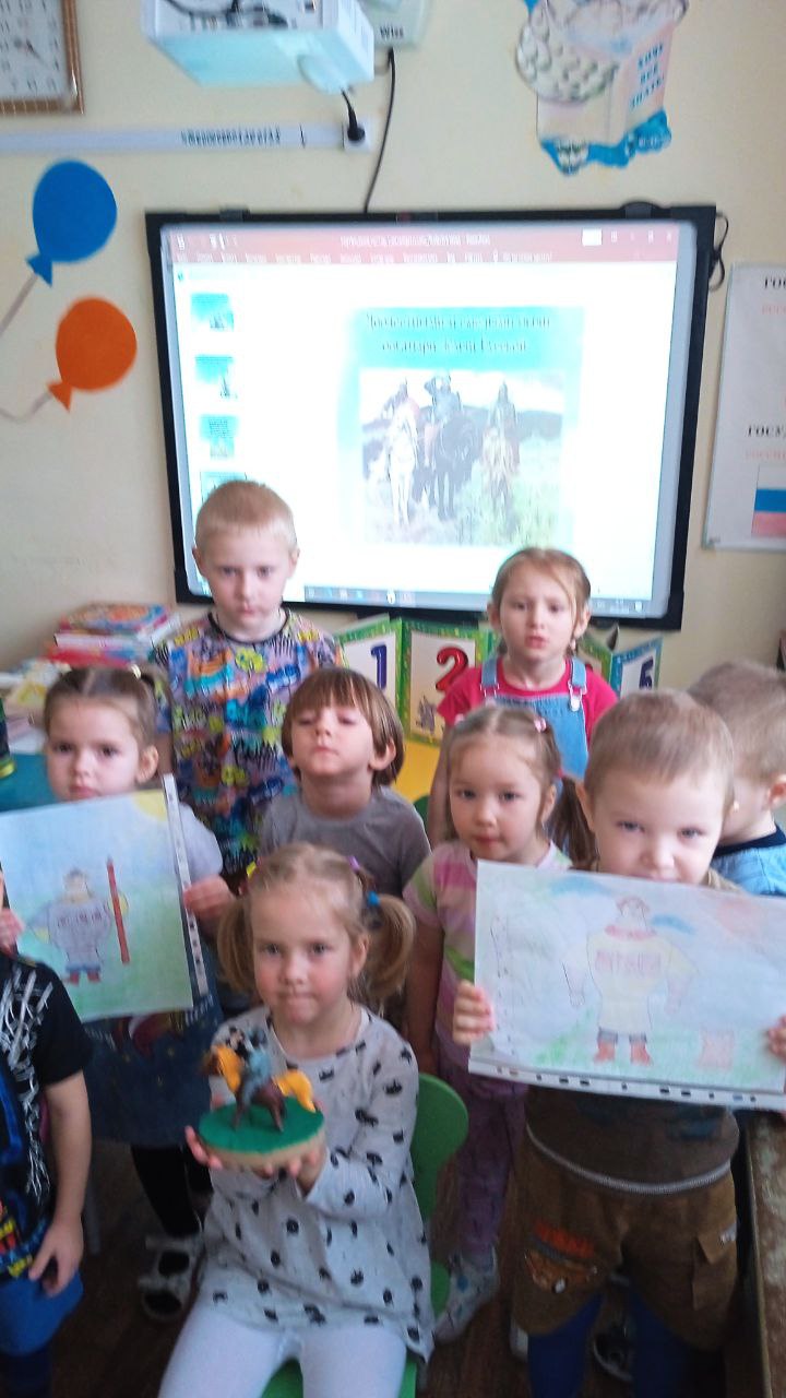 Ребята дома постарались с родителями и нарисовали рисунки и сделали поделки на выставку "Богатыри земли русской"".