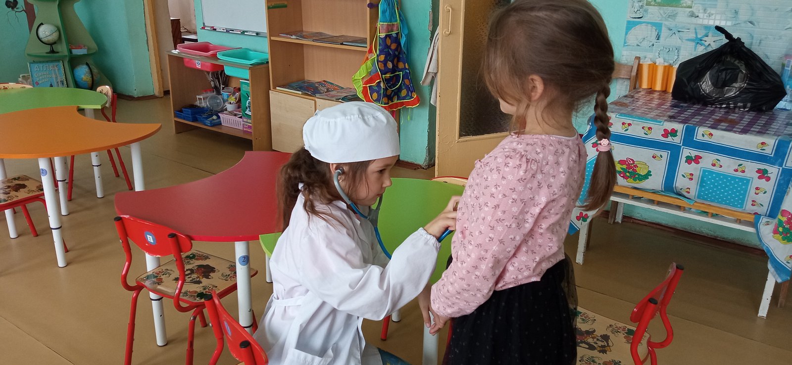 В детском саду "Колосок" ежедневно с детьми проводятся зарядки, во время приёма пищи воспитатели рассказывают о полезных продуктах, проводятся беседы о пользе физкультуры и спорта, соревнования, а ещё наши дети мечтают стать докторами и часто свою мечту воплощают в игре.