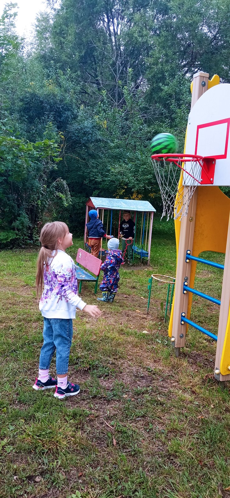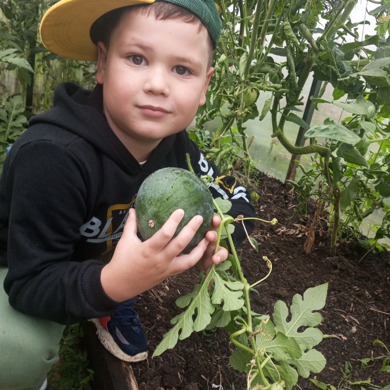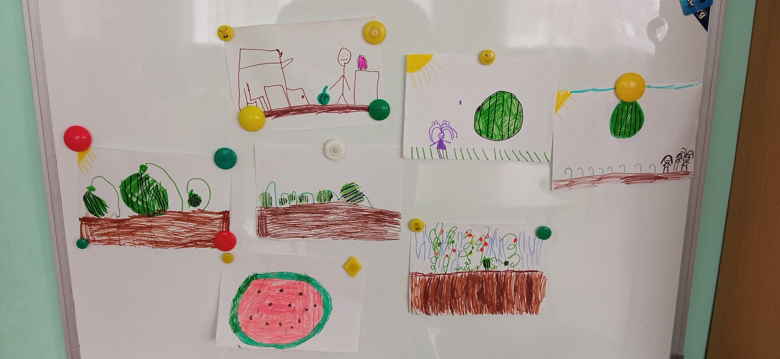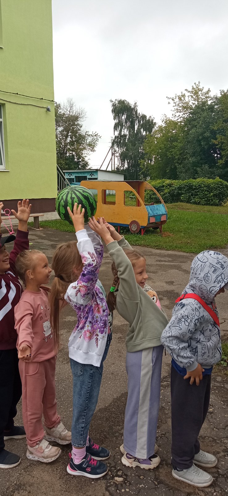 Мы играли в подвижные игры с мячиком в виде арбуза, рисовали арбузы на выставку, собирали разрезные картинки, а родители поделились фотографиями с урожаем арбузов на своих грядках.