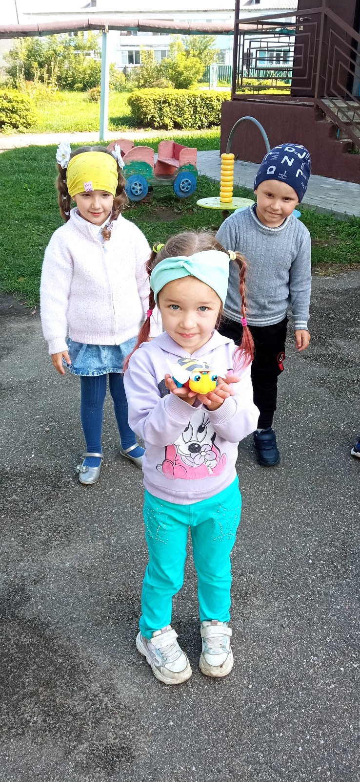 Мы с ребятами сегодня тоже поговорили о традициях этого праздника, а ещё поиграли с маленькой пчёлкой, нарисовали ей рисунки-подарки и построили новые домики.