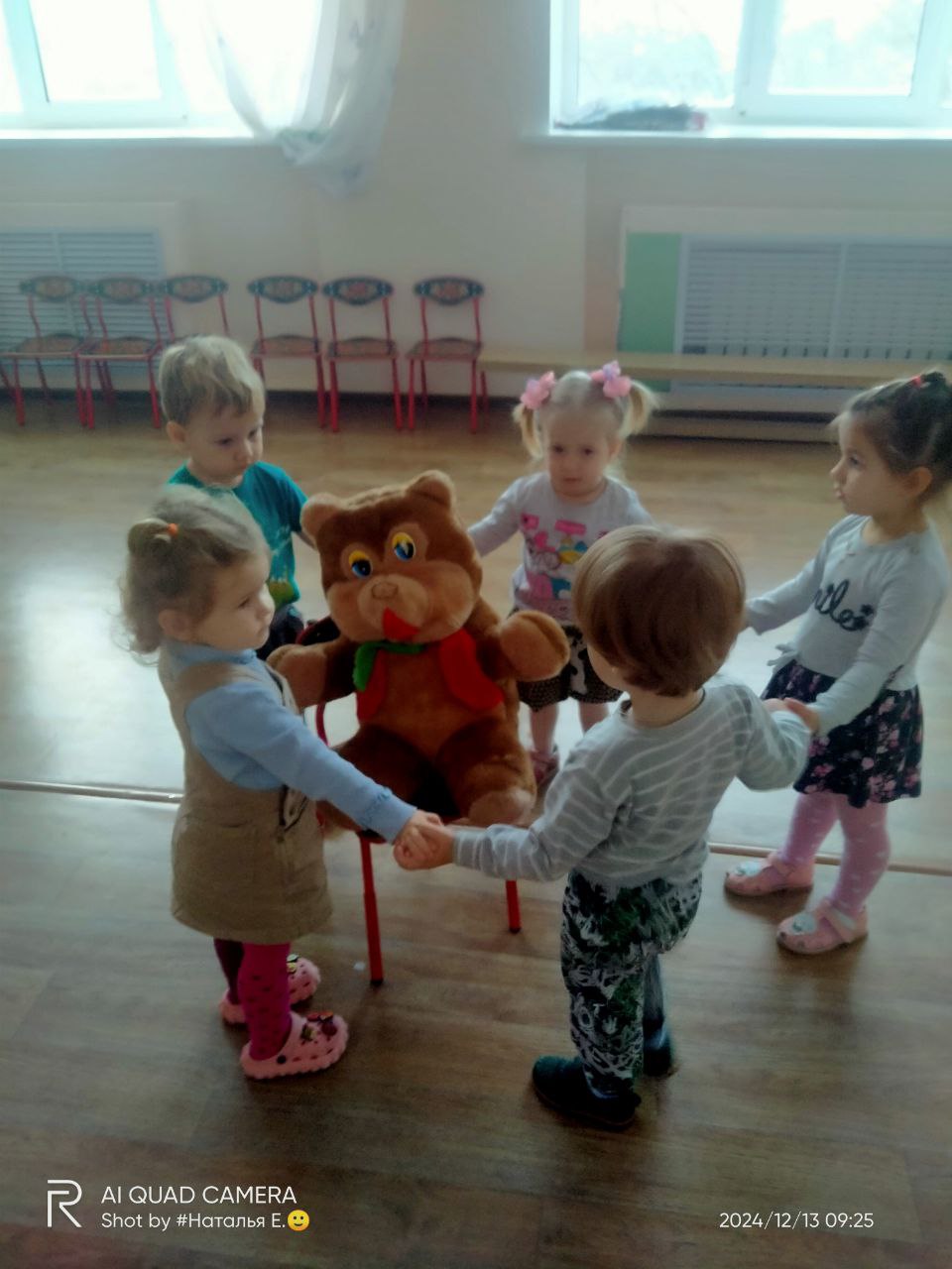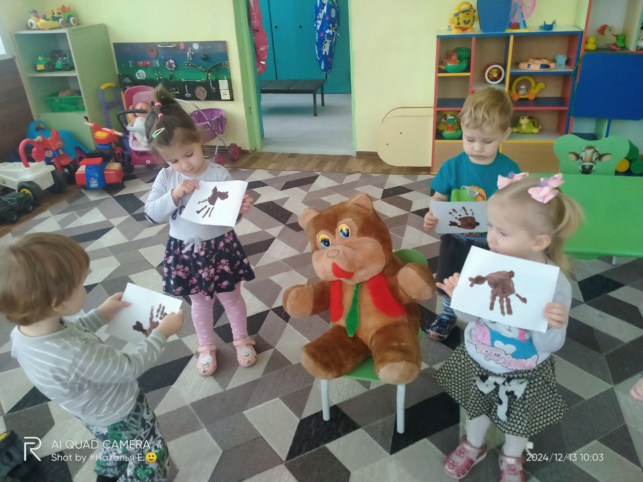 Сегодня к самым нашим маленьким воспитанникам в гости приходил медвежонок Тимка. Ребята угощали его чаем, играли в игры и нарисовали портрет Тимки.