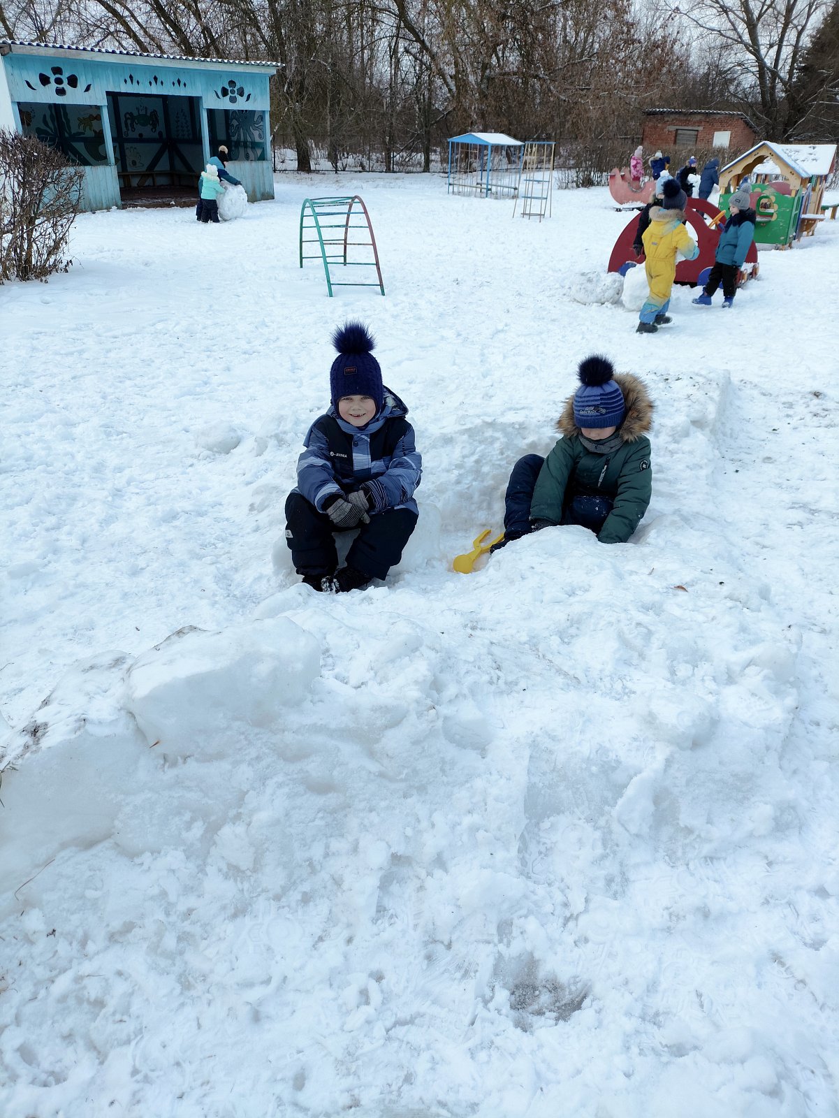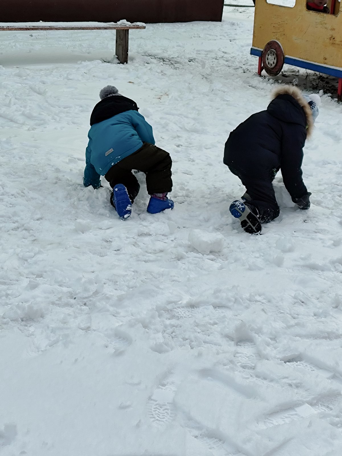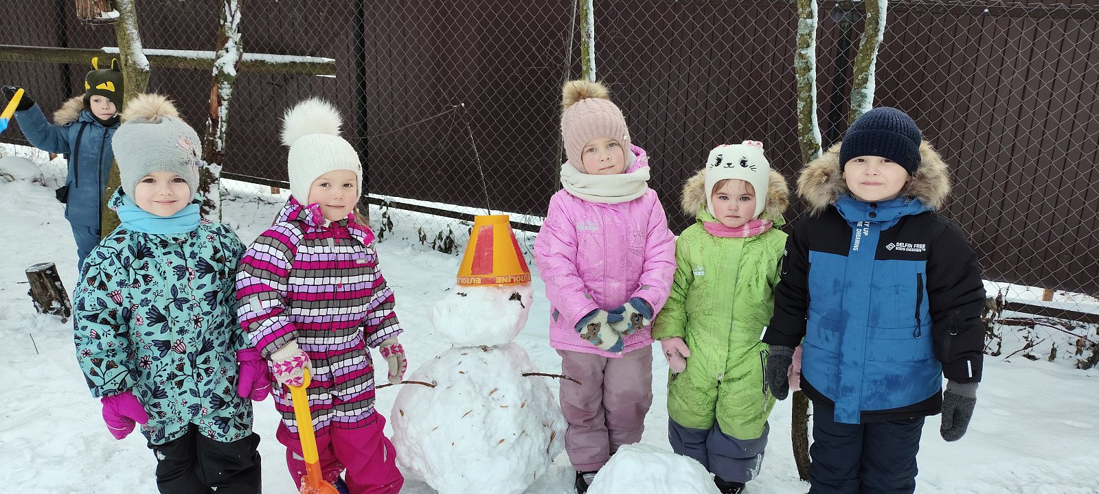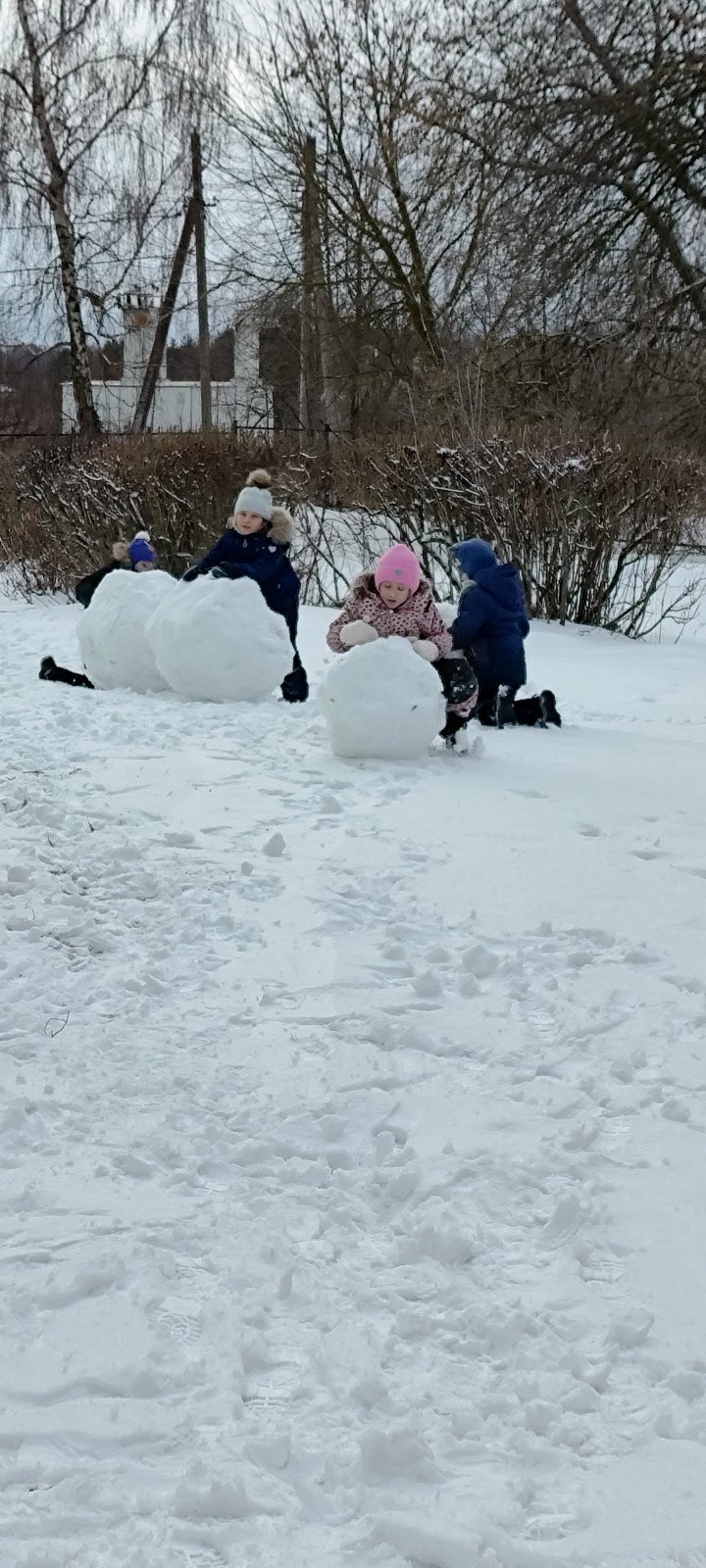 А у нас в этом году снега как-то маловато. Но мы всё-таки сумели слепить снеговика.