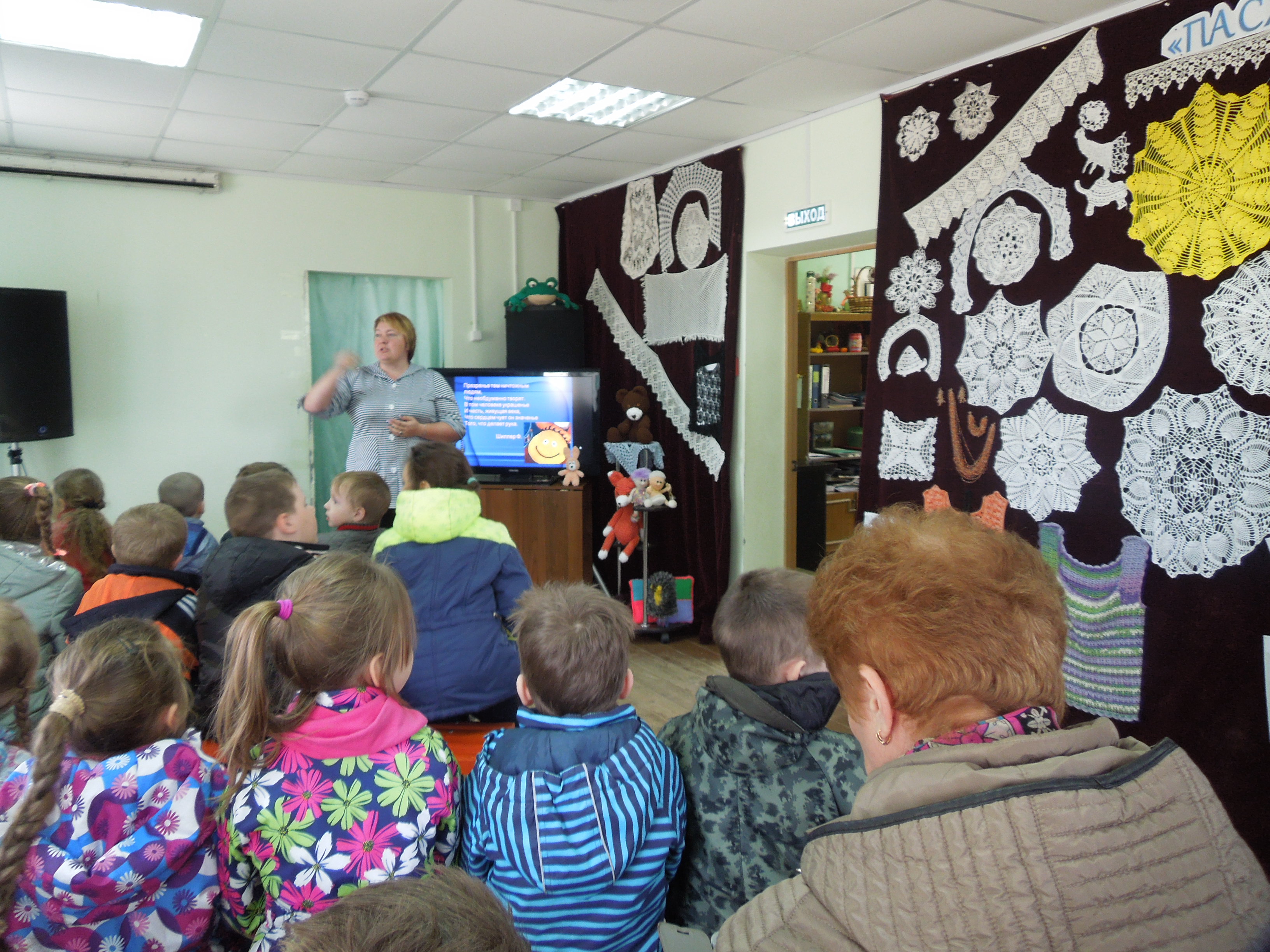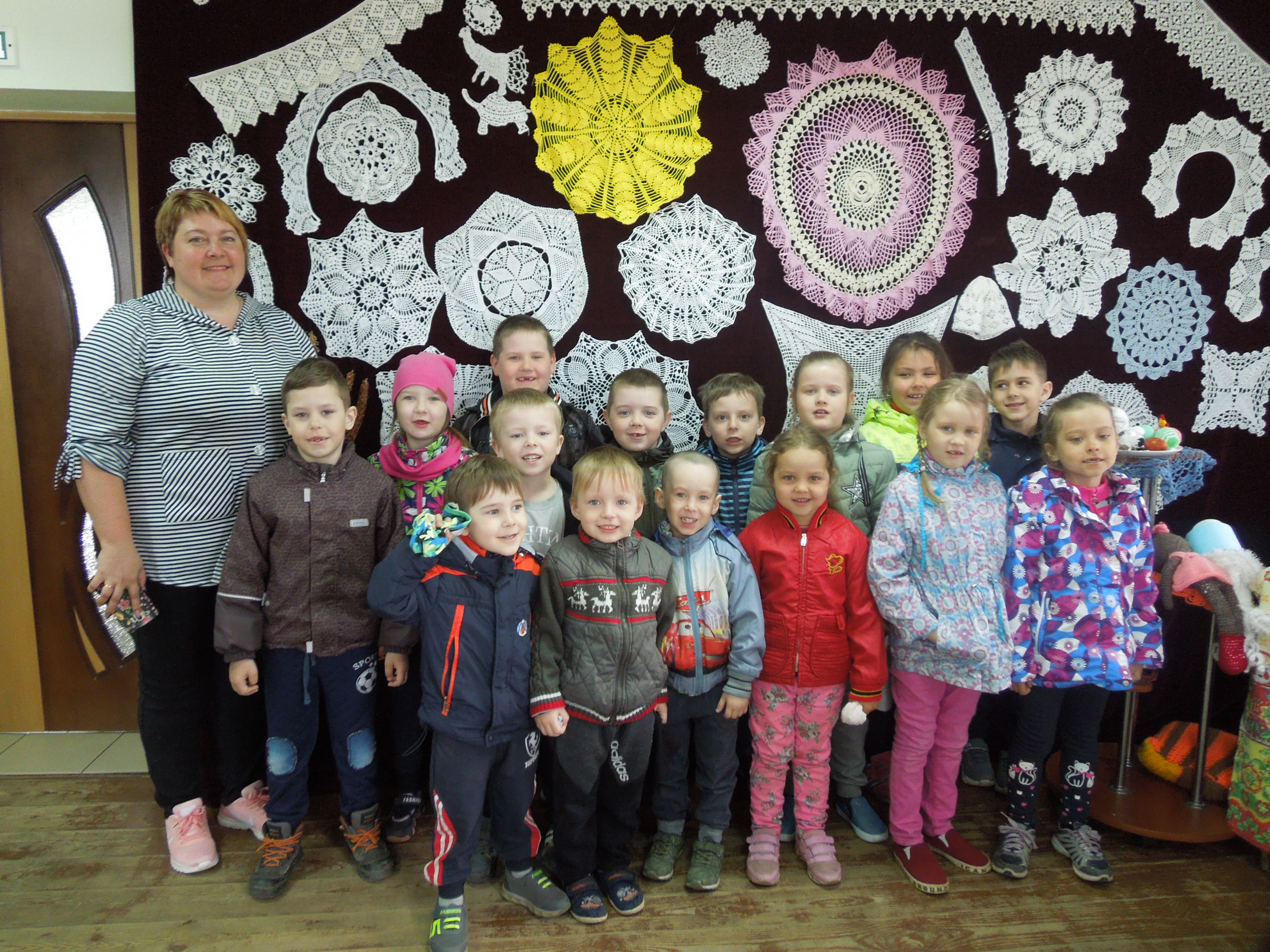 30 апреля дети старшей группы нашего ДОУ посетили выставку кружевных изделий рождественских мастериц. Детям рассказали об истории возникновения вязаных и кружевных изделий, показали игрушки, связанные крючком.