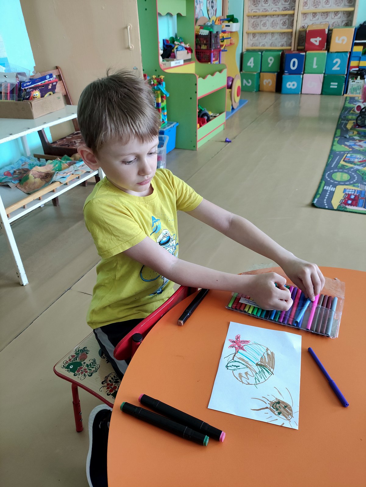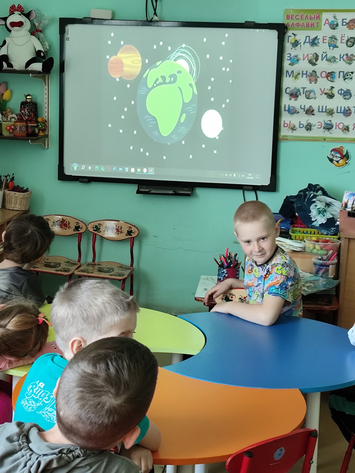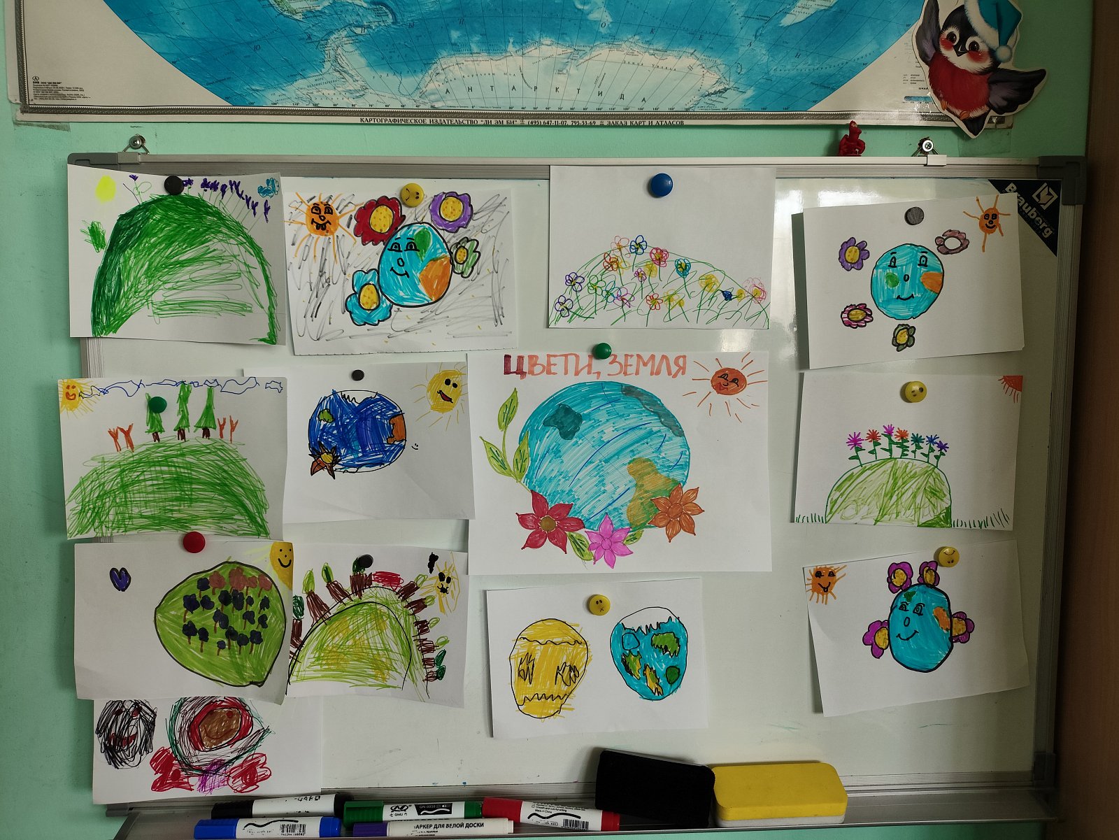 Сегодня старшие дошкольники смотрели видеофильм о загрязнении окружающей среды, а потом рисовали рисунки для выставки "Цвети, Земля".