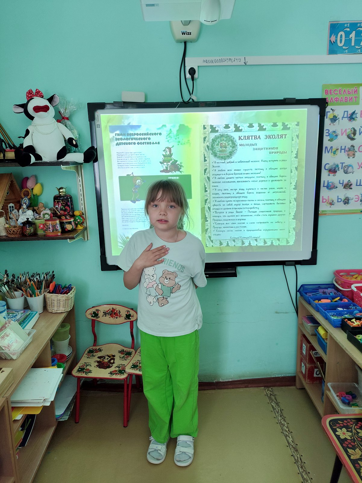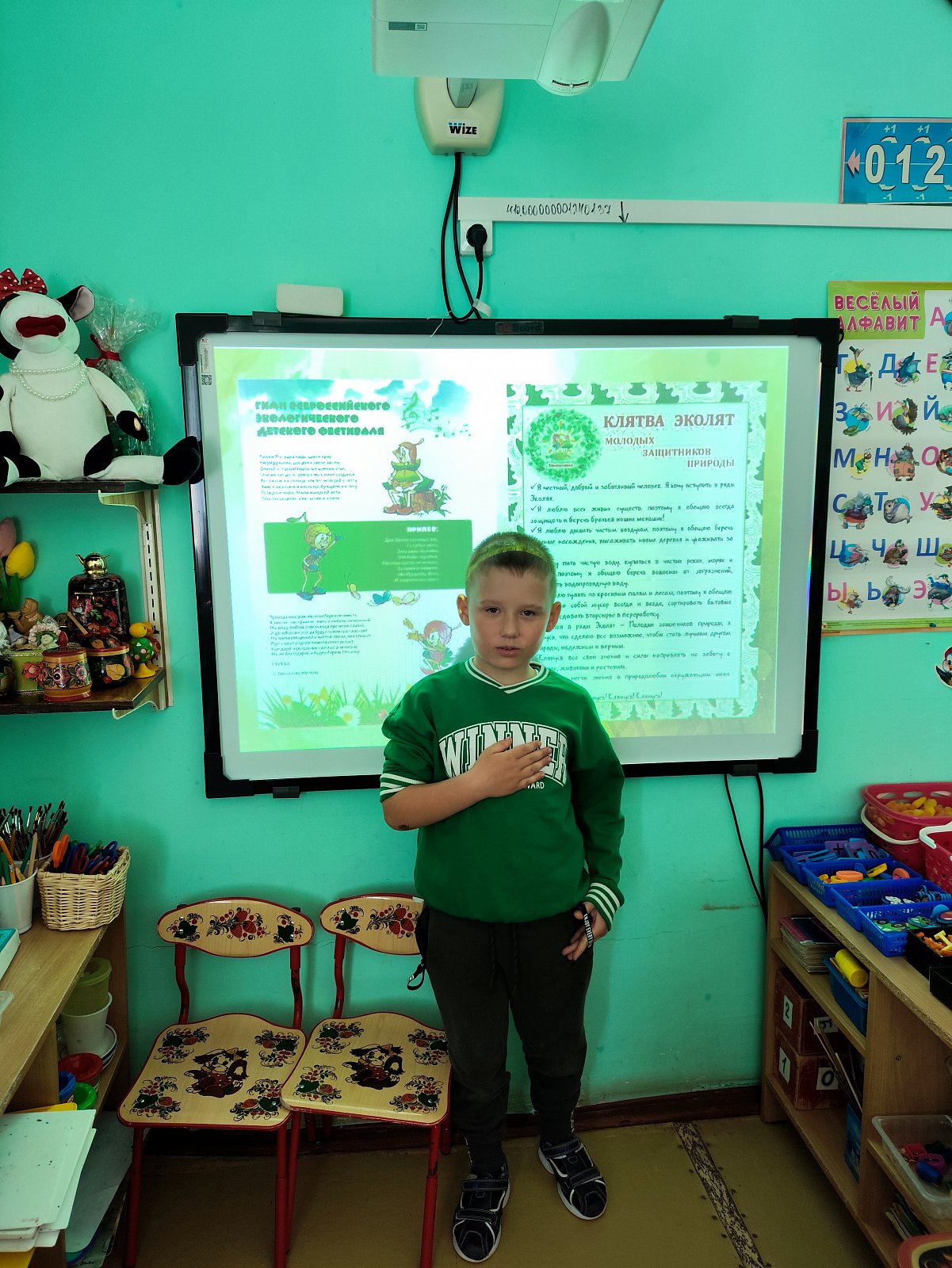 Дети с гордостью произнесли слова клятвы юных эколят и получили специальный символ.