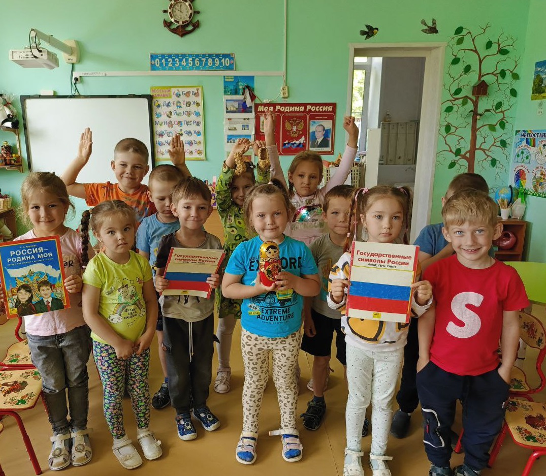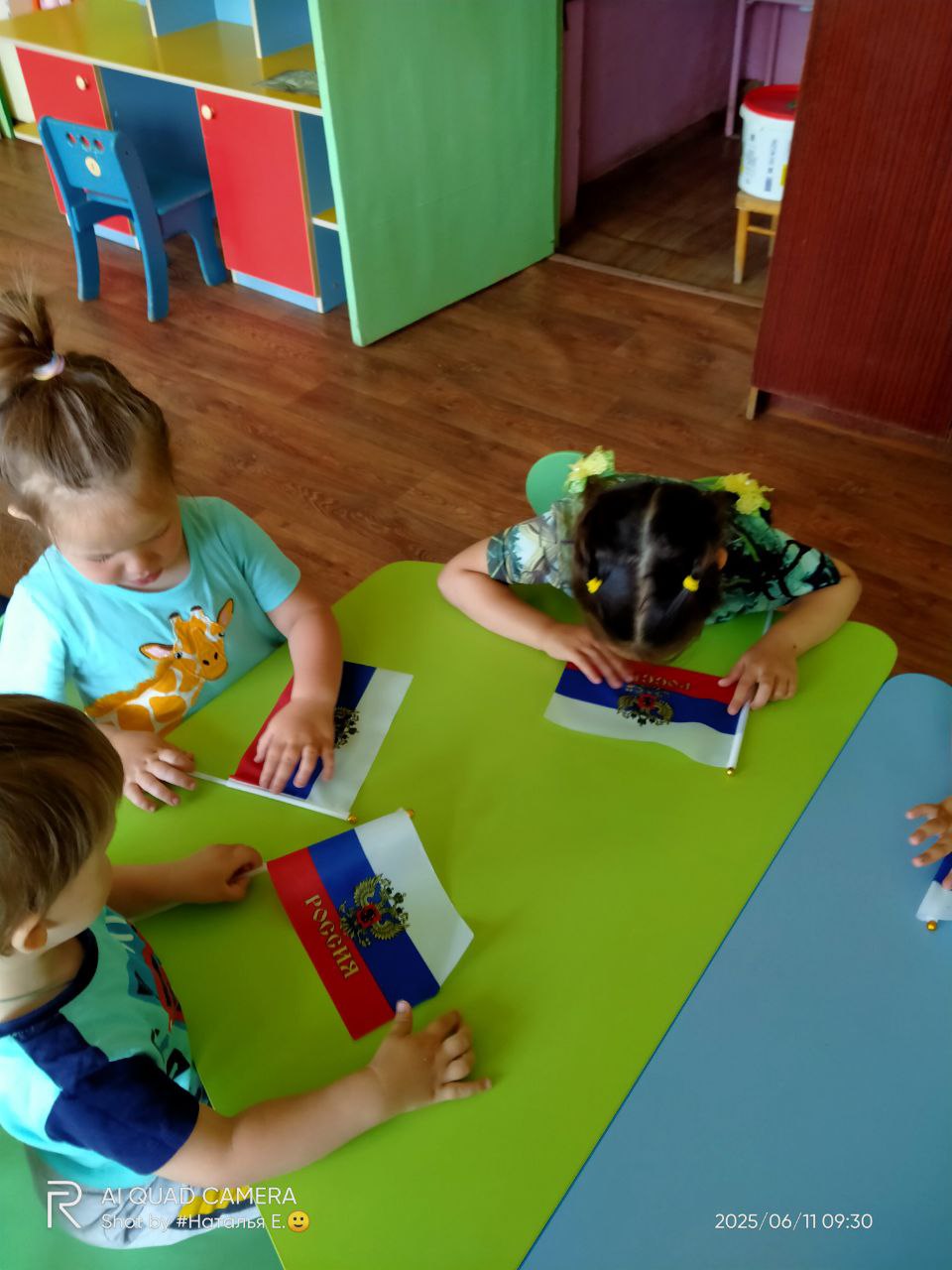 Сегодня в детском саду "Колосок" прошёл тематический день "Россия-Родина моя!", дети говорили о нашей стране, о главных символах, поиграли в хороводные игры, собирали из частей Российский флаг, а малыши делали поделку "Сердце России".
