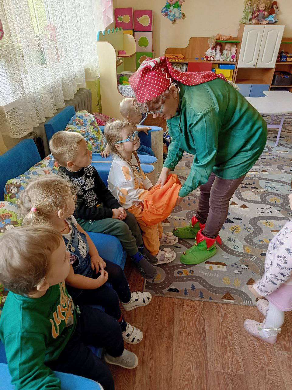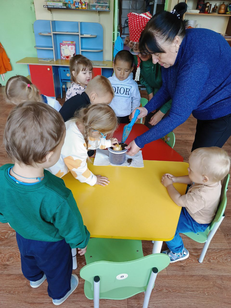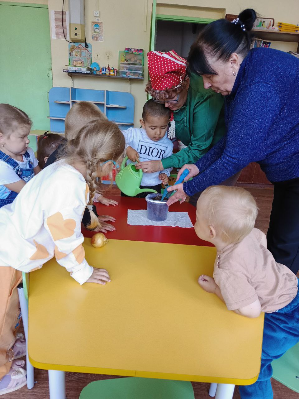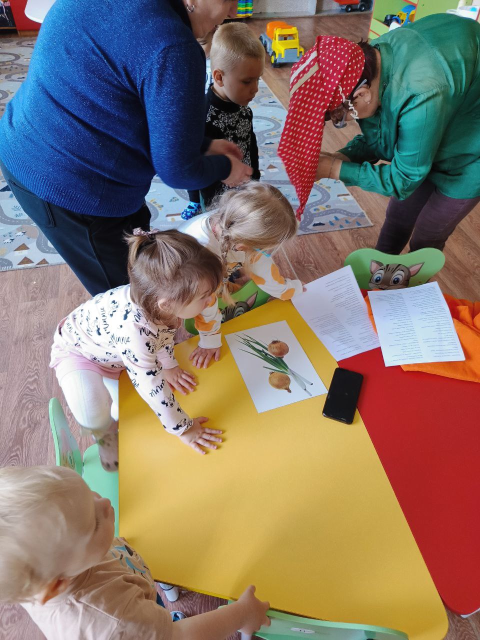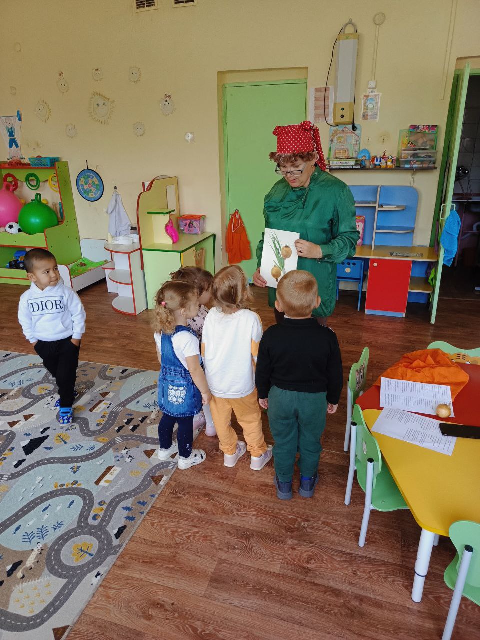 В младшей группе прошло тематическое занятие "В огороде главный-лук!". Дети узнали о пользе лука, научили Петрушку сажать лук и поиграли в игры с Лучком.