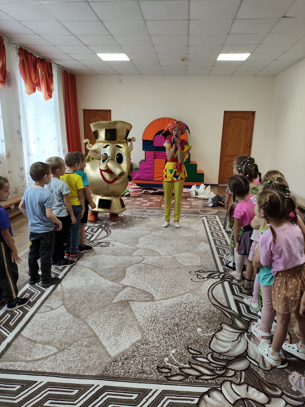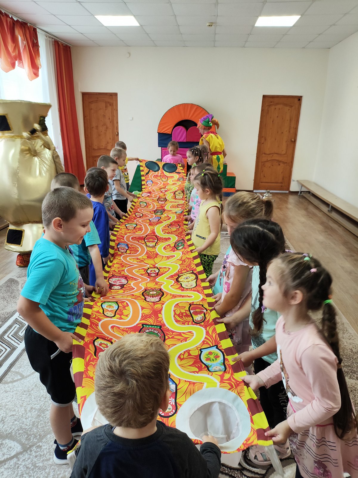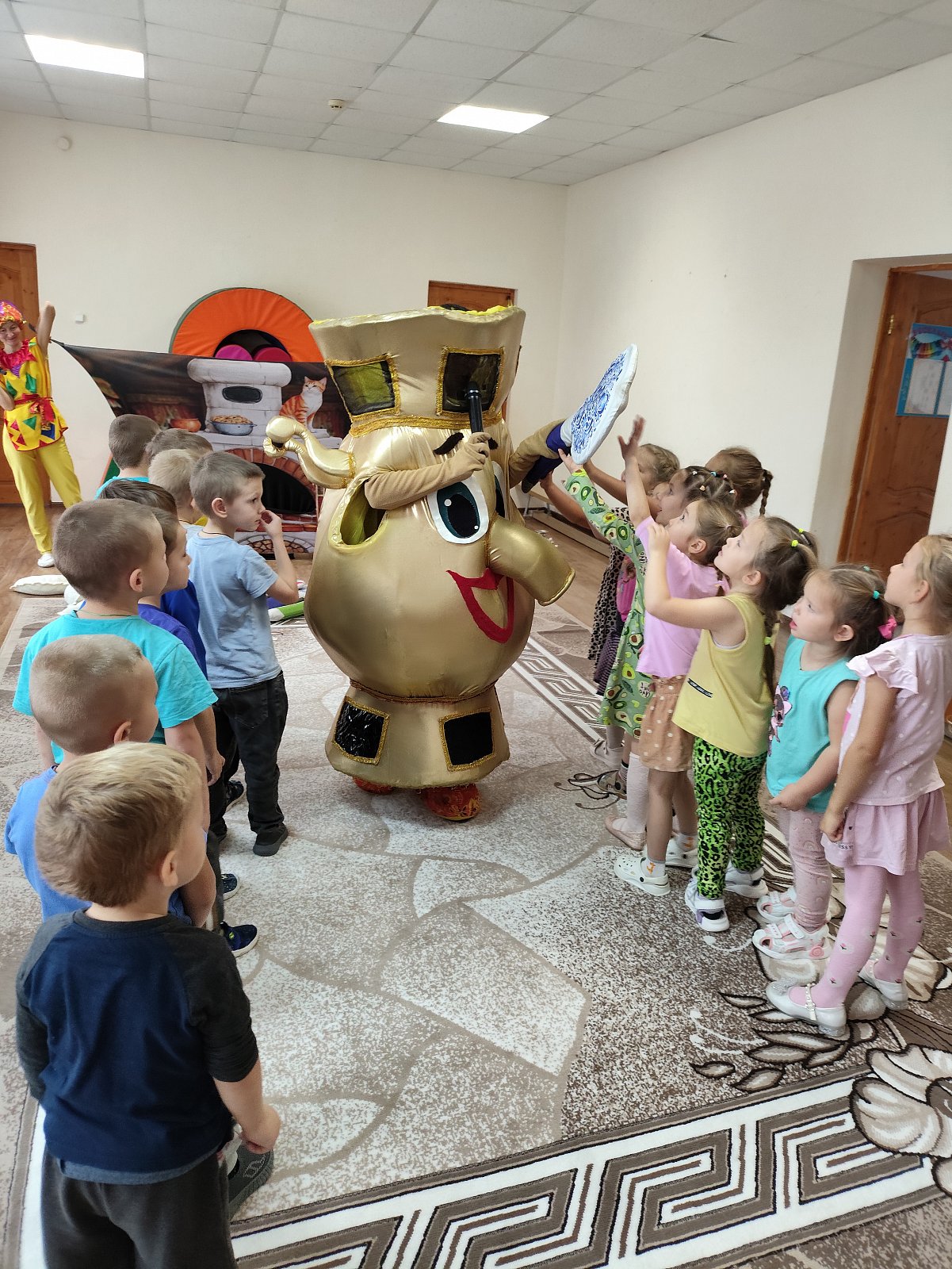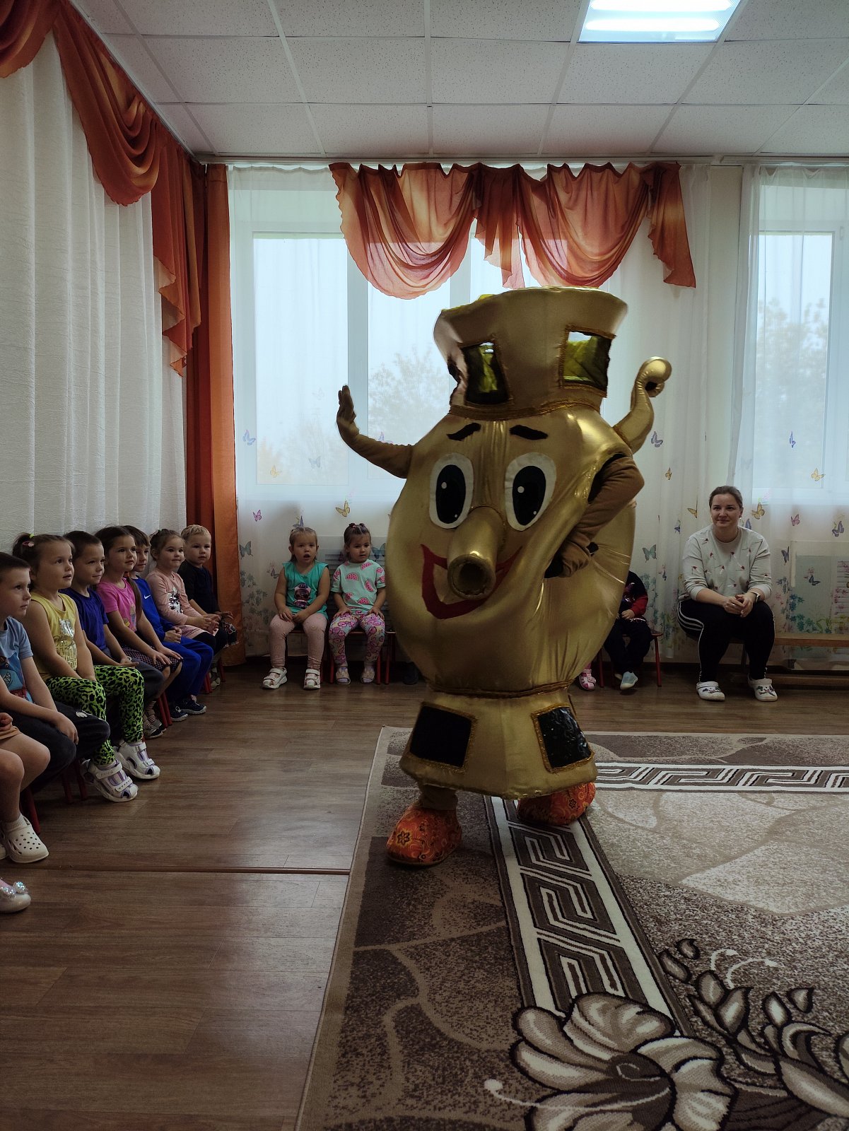 В гостях у ребят детского сада был театр "Квест-шоп" с познавательно-игровой программой "Почему самовар пузатый?" Дети выполняли разные задания, искали ответ на вопрос "Почему самовар пузатый?"в конце мероприятия дети узнали, что самовар не может быть не пузатым, у него много друзей и всех он должен угостить ароматным чаем.