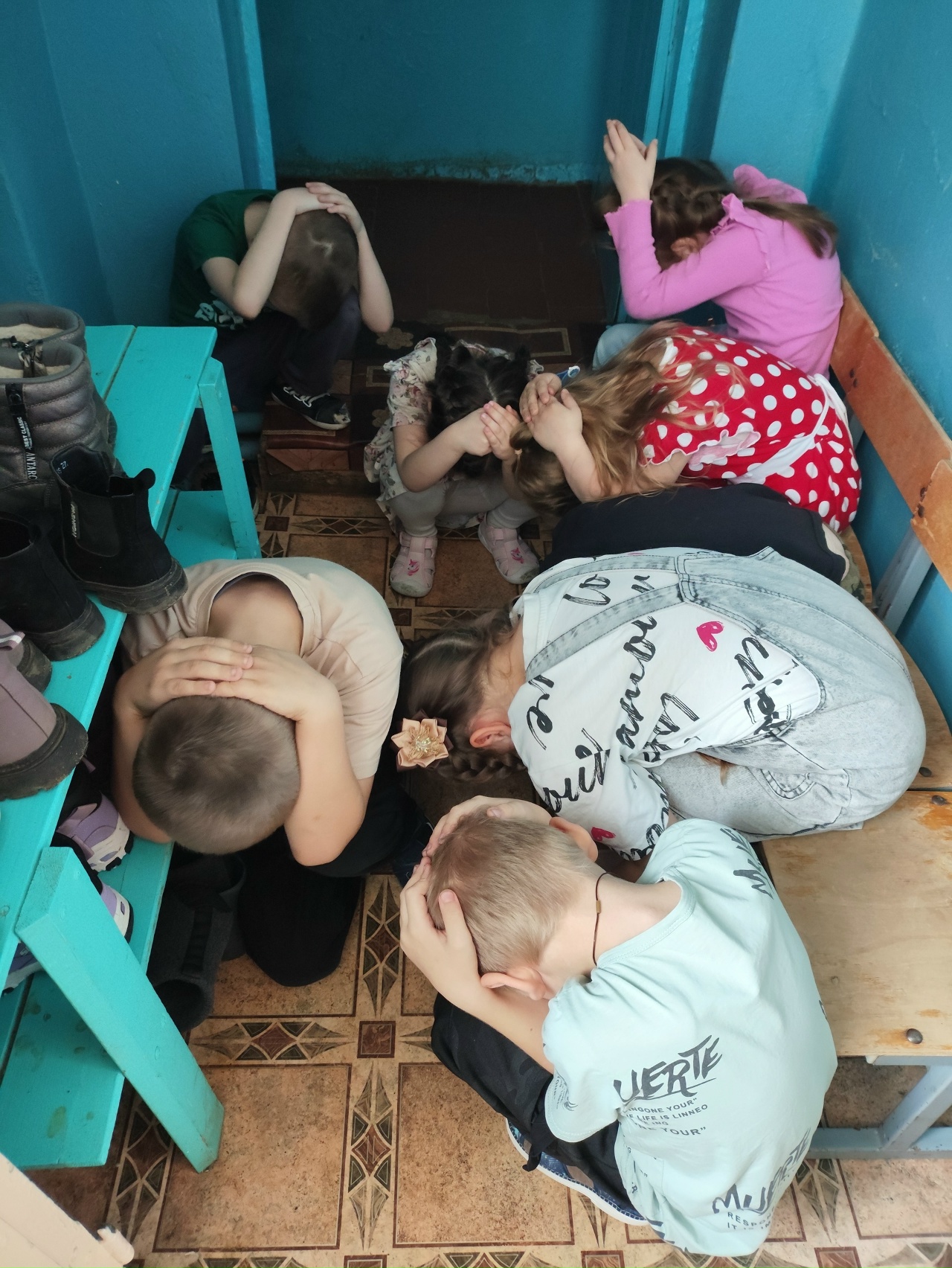 Ребята в игровой форме учились быстро собираться и эвакуироваться из здания.